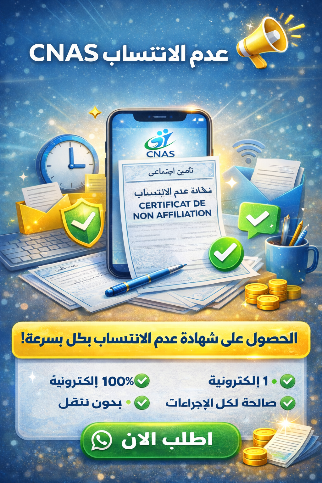 🔔 خدمة استخراج شهادة عدم الانتساب CNAS 🔔 1 200 د.ج